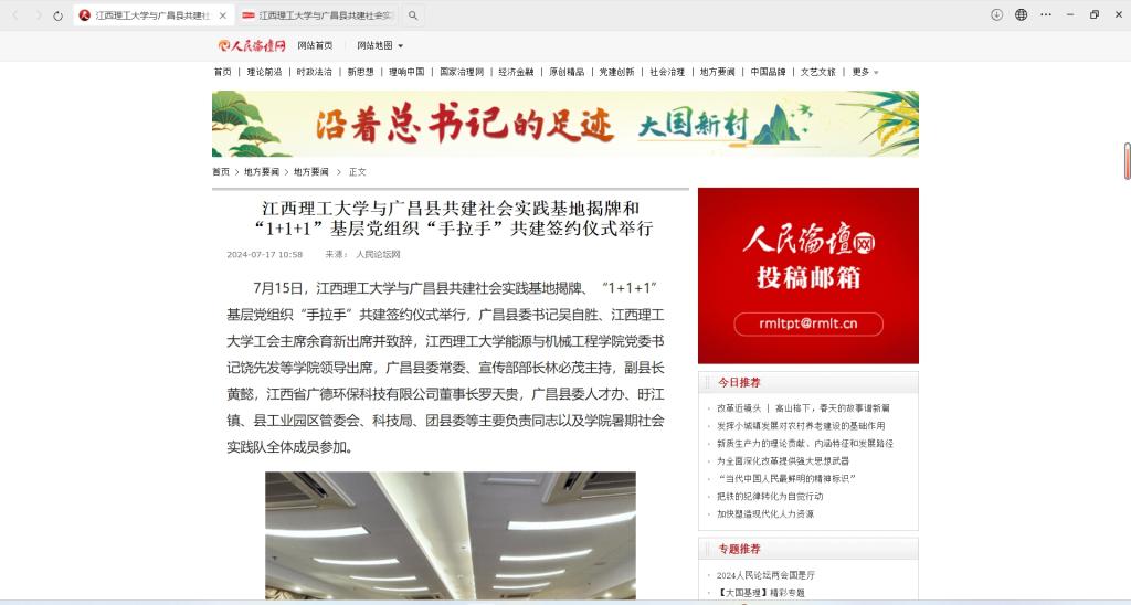 能源与机械工程学院第三党支部、广昌县旴江镇机关党支部、江西省广德环保科技股份有限公司党支部授牌,三方共建支部代表作了发言并进行了签约。