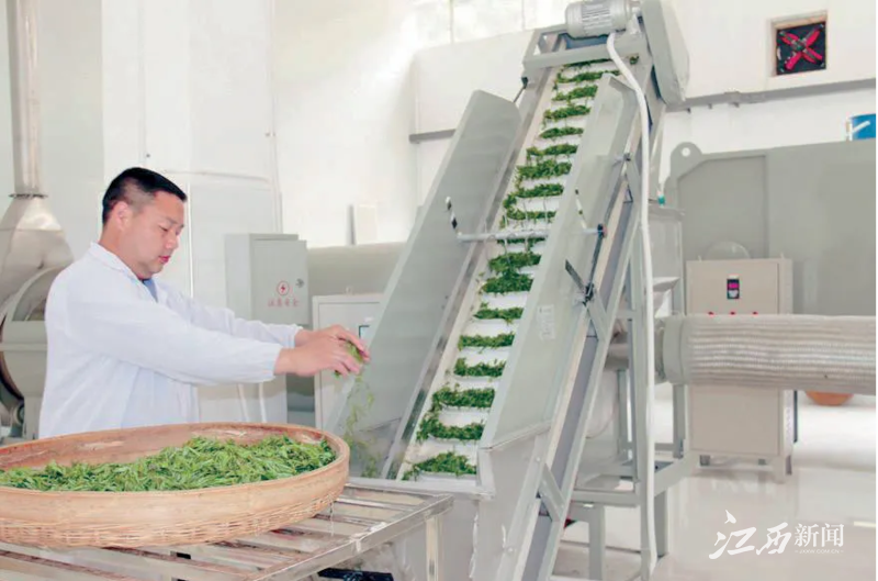 “狗牯脑茶为什么叫这么名字呀?”“狗牯脑茶怎么出众呢?”“狗牯脑茶的工艺有哪些呢?”队员们积极地询问着狗牯脑茶背后的秘密。“因山头形似一只仰天长啸的公狗,便取名‘狗牯脑’。”“狗牯脑茶以其叶片细嫩均匀、碧色中微露黛绿、茶味清凉芳醇香甜的特点而著称。”“摊青、杀青、初揉、杀二青、复揉、整形提毫、炒干……”江西茗优茶业有限公司经理陈慧利热情地向队员们介绍着。随后,队员们来到制茶坊,观看了狗牯脑茶的制作工艺。陈慧利表示,尽管公司已实现了自动化、数字化生产,但依然保留了传统加工制作的严格要求,完美保留了狗牯脑茶的独特品质。