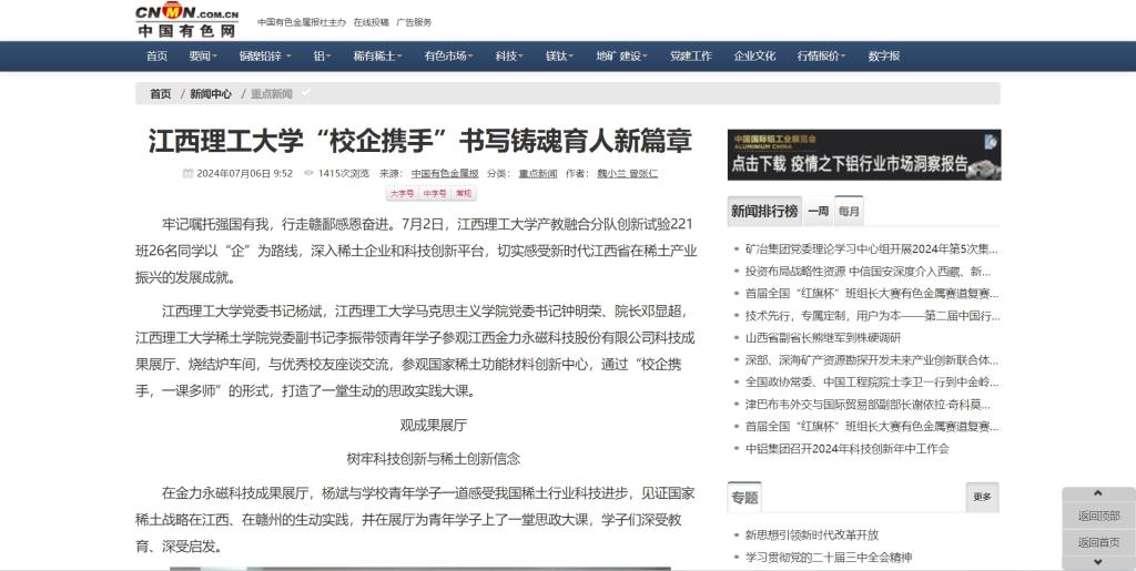 “今天,我们带领学生走进企业,同学们深入金力永磁产业一线,了解国创中心促进稀土产业高质量发展的国家使命,将思政小课堂和社会大课堂有机结合起来。”邓显超表示,本次大思政实践活动不仅加强了学校思政课教学效果,更加坚定了青年学子们科技自立自强的信念与科技报国的决心。