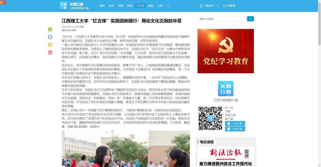 此次活动不仅加深了各民族的文化交流与理解,让实践队员们亲身体验了当地的风土人情和民族文化,还为他们提供了宝贵的学习机会和成长平台,也促进了民族团结与友谊的进一步发展。相信在未来的日子里,赣陶将继续加强文化交流与合作,共同谱写民族团结与友谊的新篇章。(文/陈烨、戴家豪、周颖 图/袁海辉、胡清华)