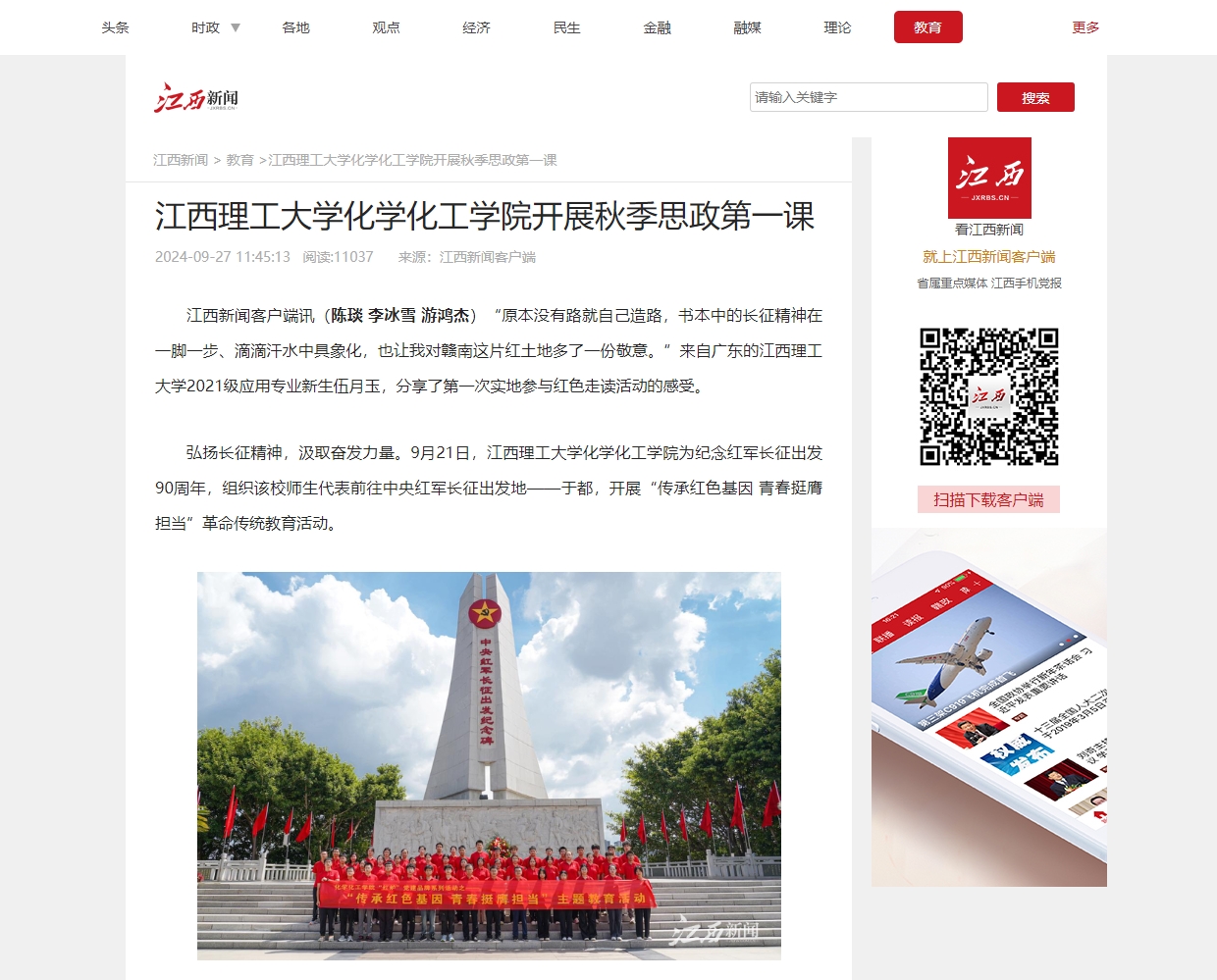 化学化工学院为纪念红军长征出发90周年,组织该校师生代表前往中央红军长征出发地——于都,开展“传承红色基因 青春挺膺担当”革命传统教育活动。