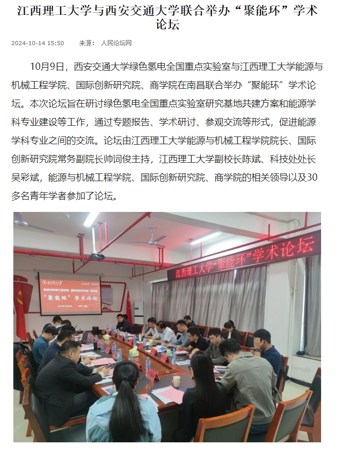 能源与机械工程学院、国际创新研究院、商学院在南昌联合举办“聚能环”学术论坛。本次论坛旨在研讨绿色氢电全国重点实验室研究基地共建方案和能源学科专业建设等工作,通过专题报告、学术研讨、参观交流等形式,促进能源学科专业之间的交流。论坛由奈飞工厂
