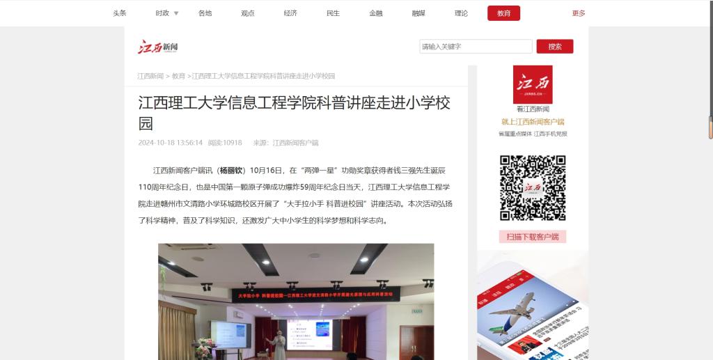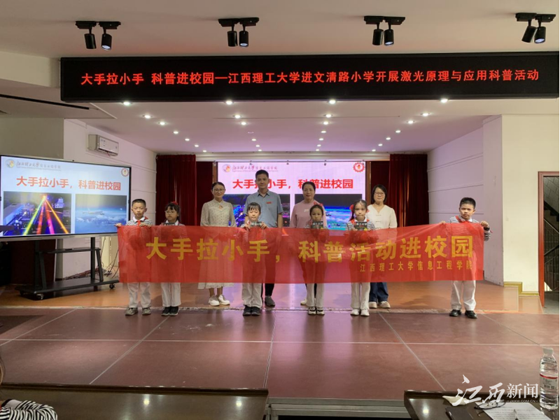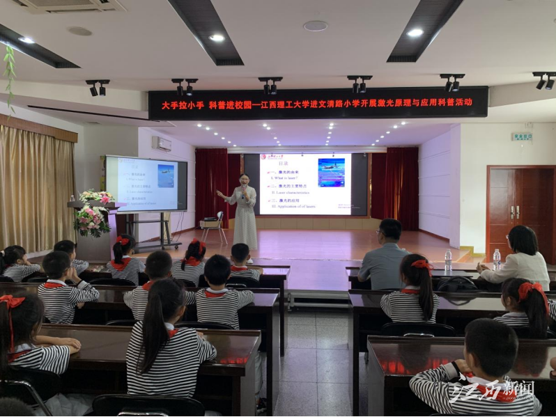 走进赣州市文清路小学环城路校区开展了“大手拉小手 科普进校园”讲座活动。本次活动弘扬了科学精神,普及了科学知识,还激发广大中小学生的科学梦想和科学志向。