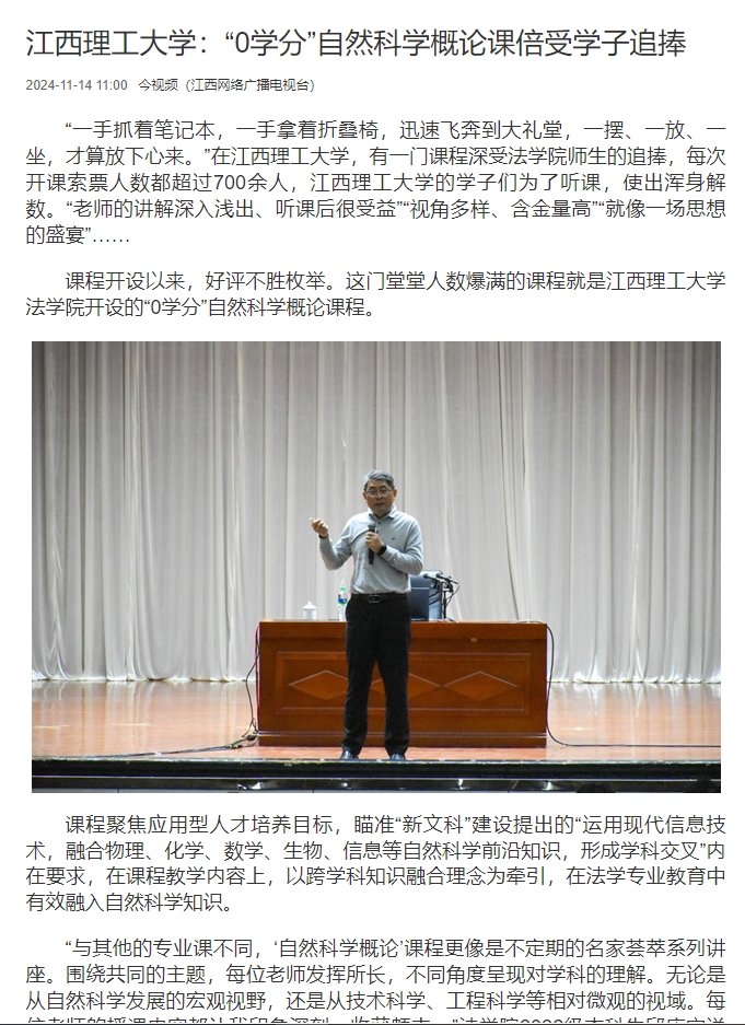法学院开设的“0学分”自然科学概论课程。