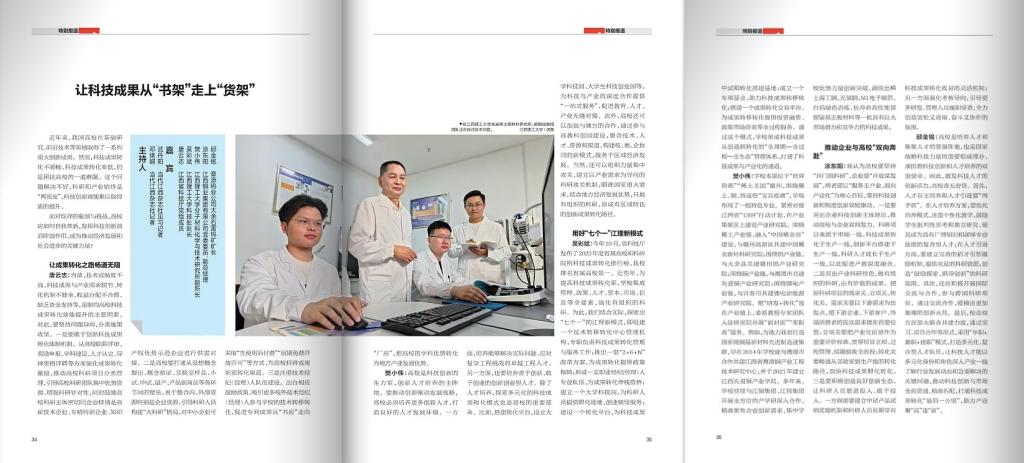 樊小伟:学校本部位于“世界钨都”“稀土王国”赣州,围绕稀土、铜、钨这些“宝贝疙瘩”,学校布局了一批特色专业。紧密对接江西省“1269”行动计划,在产业集聚区上建设产业研究院 。围绕稀土产业链,融入“中国稀金谷”建设,与赣州高新区共建中国稀金新材料研究院;围绕钨产业链,对接“世界钨都”建设,与大余县共建赣州钨产业研究院;围绕铜产业链,对接“亚洲铜都”建设,与鹰潭市共建先进铜产业研究院;围绕锂电产业链,对接“亚洲锂都”建设,与宜春市共建锂电新能源产业研究院。把“研发+转化”放在产业链上,委派教授专家团队入驻研究院“面对面”“零距离”服务。例如,为助力我省打造国家级铜基新材料先进制造业集群,早在2014年,学校就与鹰潭市合作共建江西省鹰潭铜产业工程技术研究中心,并于2021年建立江西先进铜产业学院。多年来,学校持续与江铜集团、江钨集团开展全方位的产学研深入合作,精准聚焦企业创新需求,集中学校优势力量创新突破,涌现出稀土海工钢、无氧铜、5G电子铜箔、白钨绿色冶炼、长寿命高性能富锂锰基正极材料等一批具有巨大市场潜力和竞争力的科技成果。
