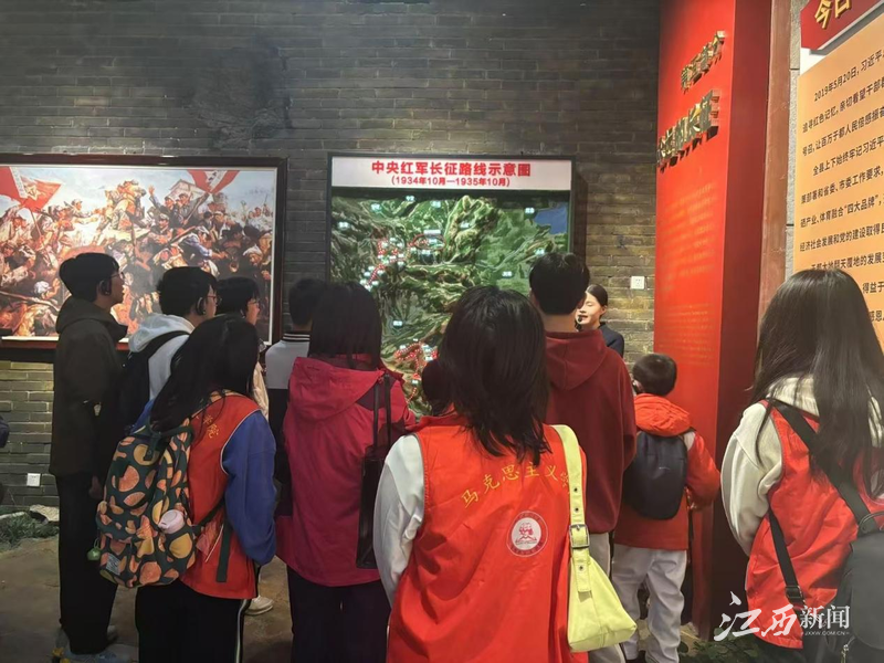 实践队的第二站,来到于都中央红军长征出发纪念馆。在纪念馆内,黄麻鞋、渔船……丰富的文物与逼真的史实场景,配合着讲解员对红军烈士遗孀等红色故事的生动讲述,大家深刻地领会到了长征精神的内涵及其意义,凸显出本土红色资源所具有的吸引力与感染力。
