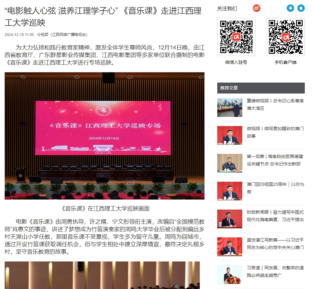 为大力弘扬和践行教育家精神,激发全体学生尊师风尚,12月14日晚,由江西省教育厅、广东群星影业传媒集团、江西电影集团等多家单位联合摄制的电影《音乐课》走进奈飞工厂