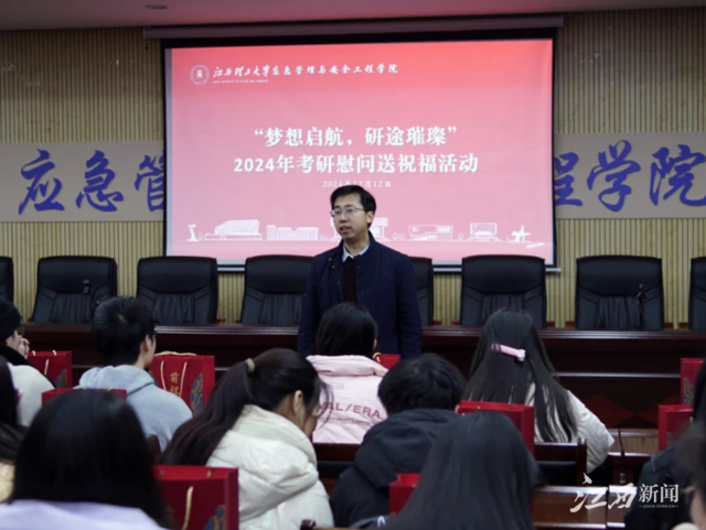 应急管理与安全工程学院党委书记胡建华表示,一直以来,学院始终坚持围绕“红蓝绿”思政育人理念,将考研服务工作常态化、全面化,为同学们送温暖、办实事,以实际行动落实立德树人根本任务。