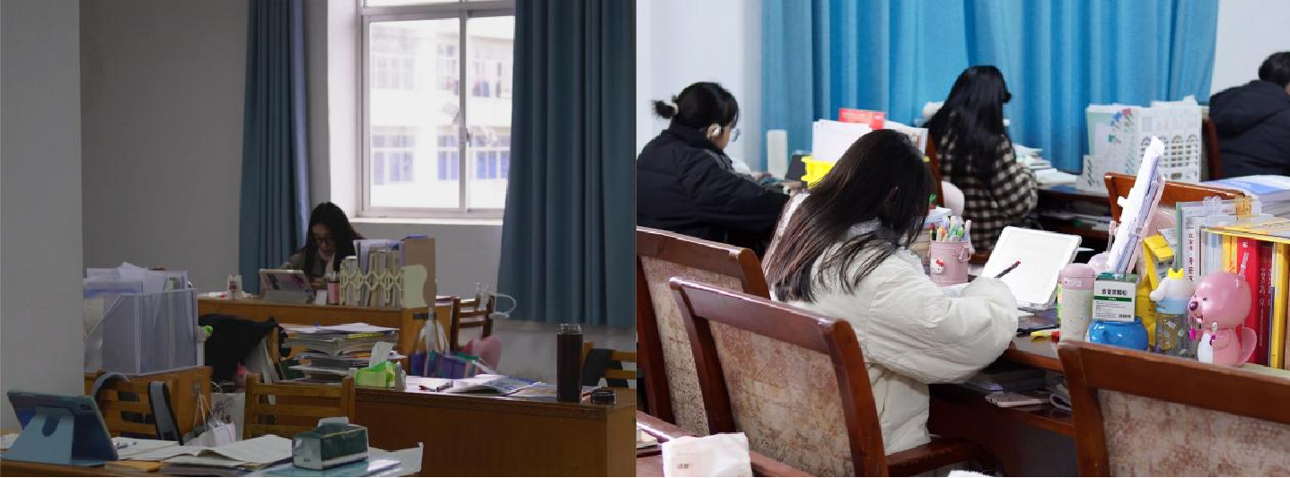 “专属考研自习室为我们提供安静、舒适的备考环境。暑假期间,学校领导多次来到自习室关心慰问,每一次的温暖鼓励都给我们带来新鲜动力。”