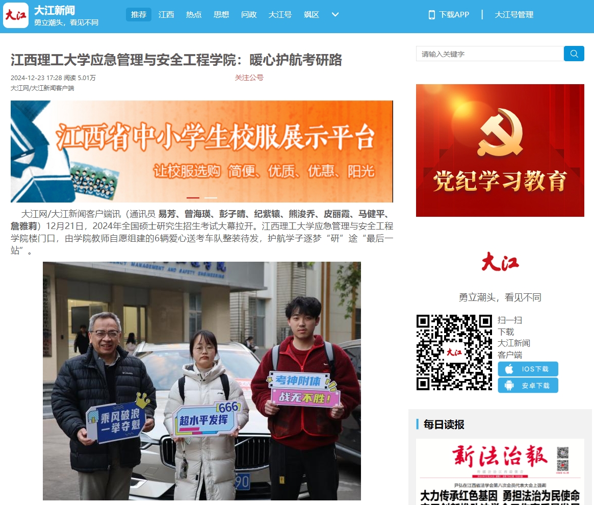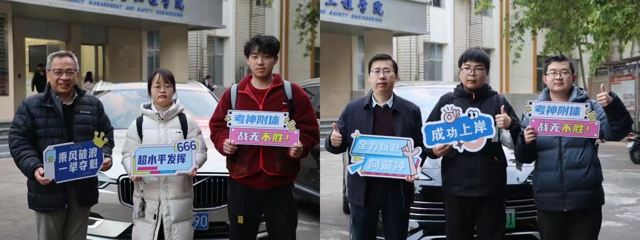 此次送考,学校应急管理与安全工程学院领导牵头组建爱心车队,学院教师们积极响应,当好同学们研考“最后一站”的“护航员”。