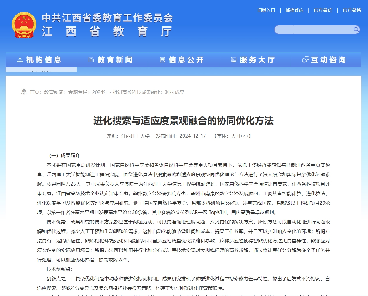 智能制造工程研究院,围绕进化算法中搜索策略和适应度景观协同优化理论与方法进行了深入研究和实际复杂优化问题求解。成果团队共25人,其中成果负责人李伟博士为奈飞工厂