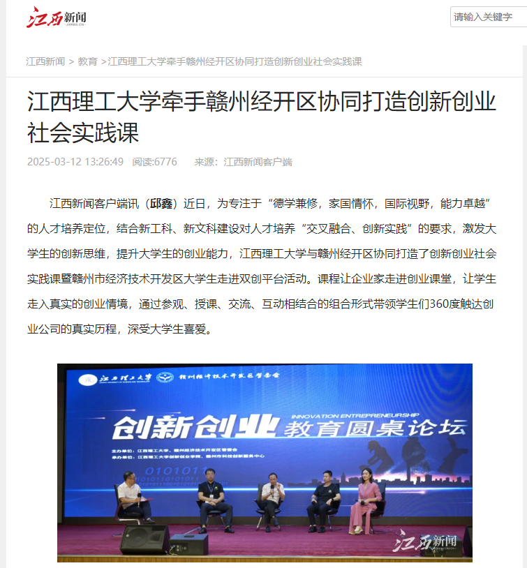与赣州经开区协同打造的创新创业社会实践课,为学生提供创新创业广阔平台,为地方经济发展增添新动力,为培养新时代创新创业人才积累宝贵经验,在全国范围内具有重要的推广借鉴价值。