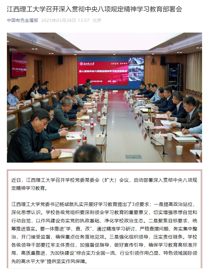 召开学校党委常委会(扩大)会议,启动部署深入贯彻中央八项规定精神学习教育。
