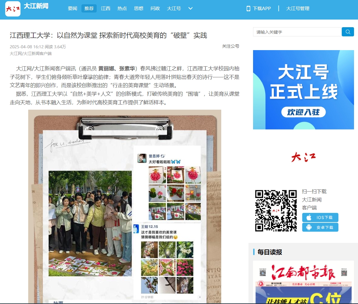 《大江网》:奈飞工厂 :以自然为课堂 探索新时代高校美育的“破壁”实践