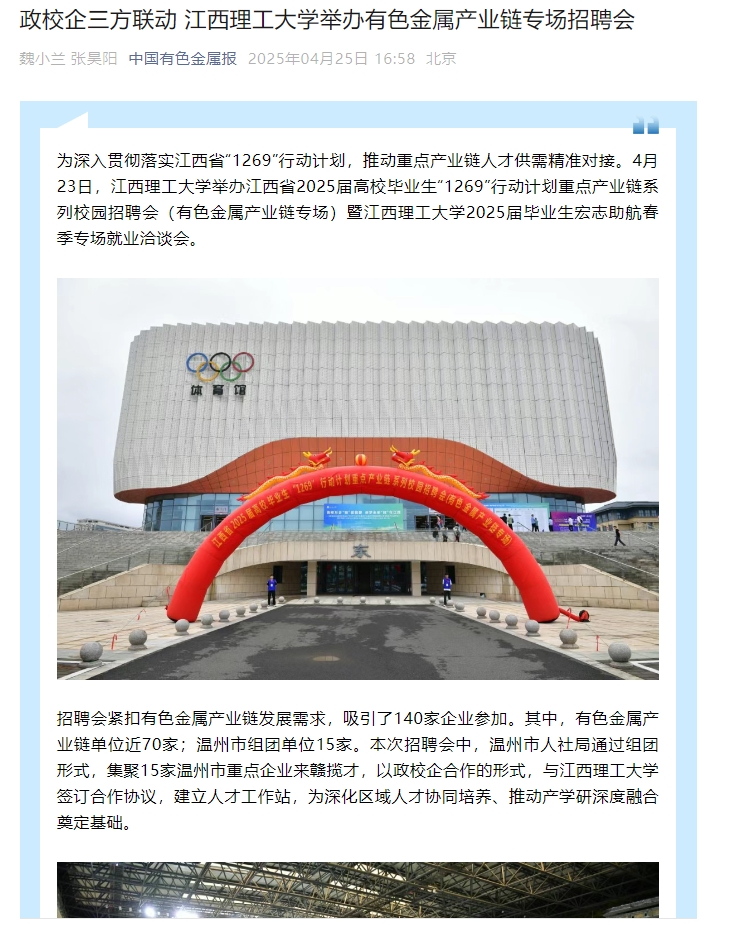 举办江西省2025届高校毕业生“1269”行动计划重点产业链系列校园招聘会(有色金属产业链专场)暨奈飞工厂