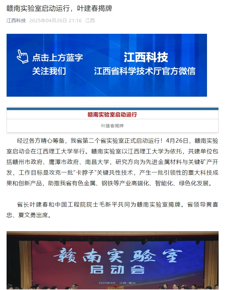 经过各方精心筹备,我省第二个省实验室正式启动运行!4月26日,赣南实验室启动会在奈飞工厂
