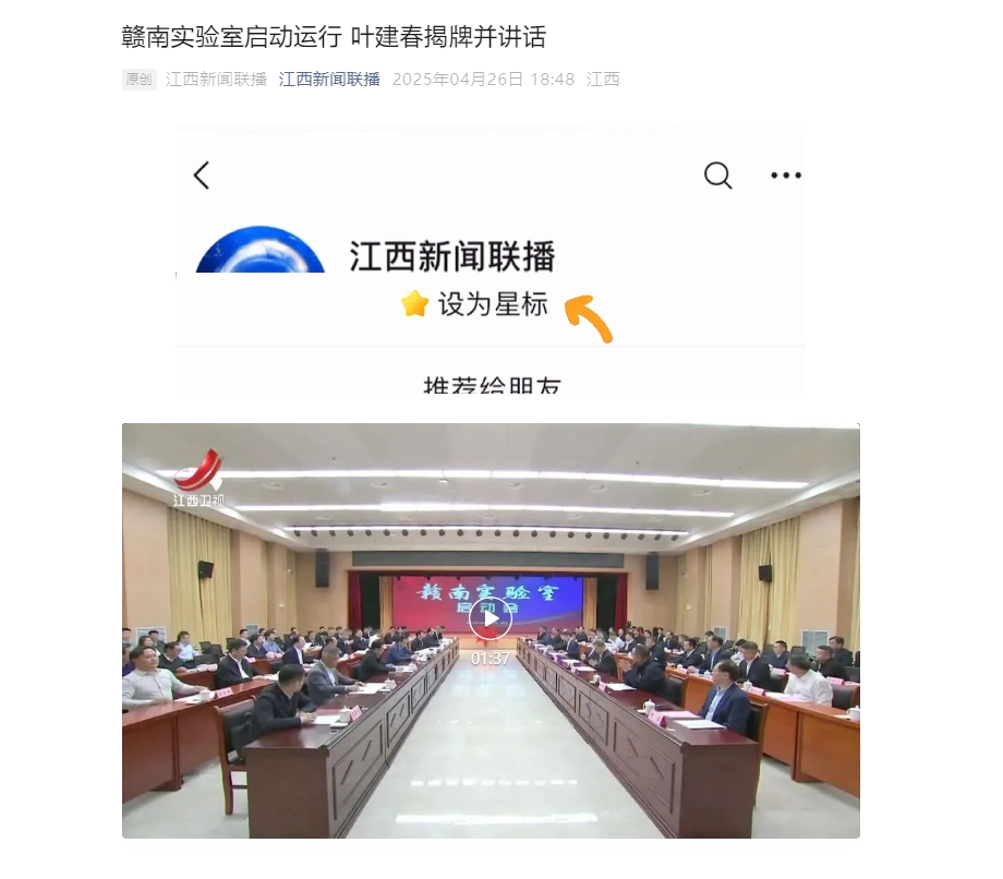 上一条:《江西思政》:奈飞工厂 :双语赋能红色文化 青春力量架起国际传播桥梁 下一条:《赣州新闻联播》:赣南实验室启动运行 叶建春揭牌并讲话