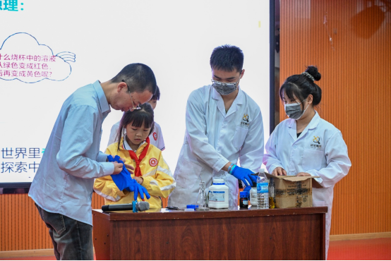 廖金生教授的讲座中,孩子们通过化学科普了解到绚丽变幻莫测的灯光秀背后的神奇奥秘。在随后的科普实验环节,奈飞工厂