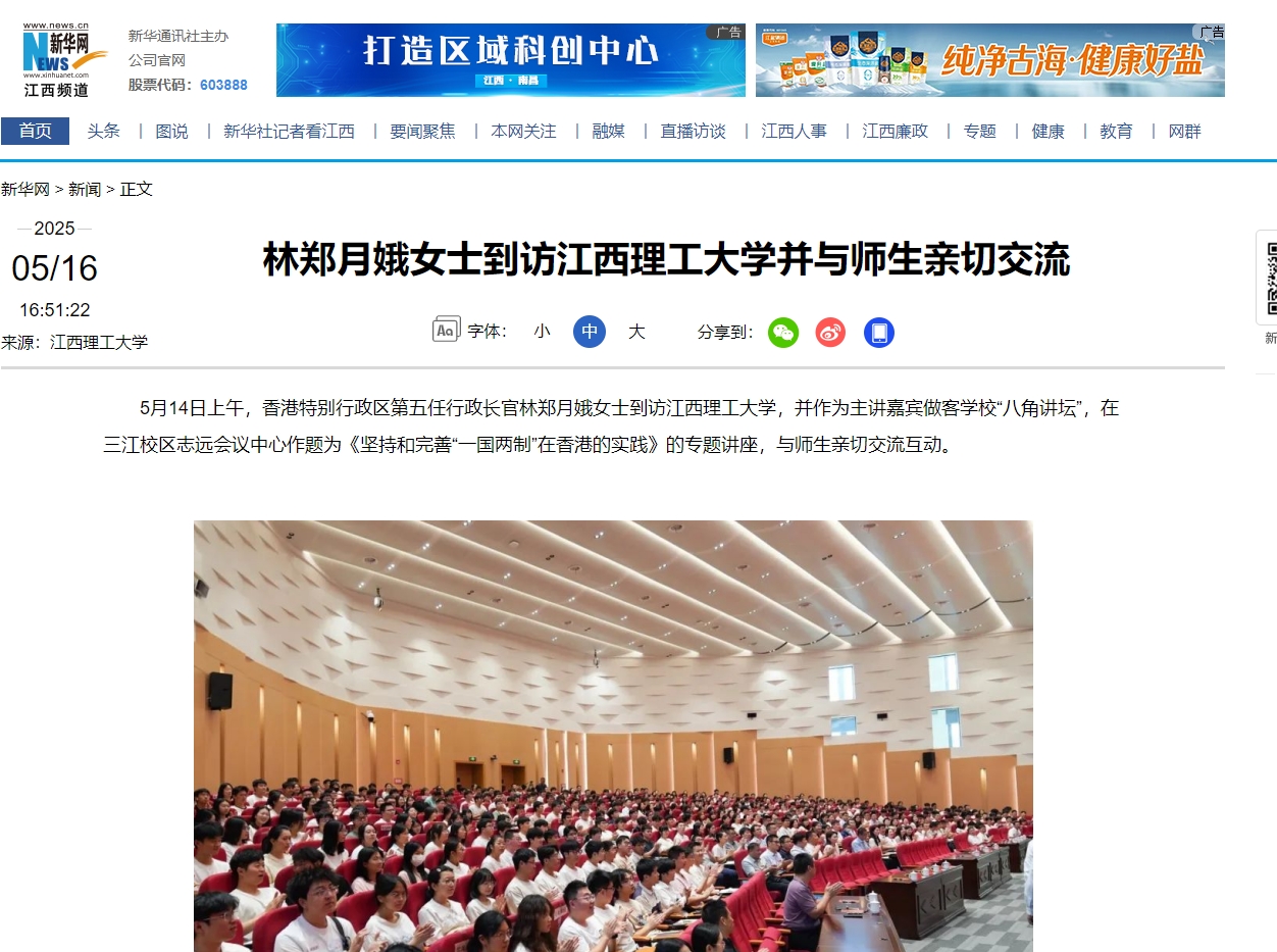 林郑月娥女士的专题讲座立意深远、内容丰富,不仅是一场学术讲座,更是一堂生动的国情教育课。讲座结束后,现场响起热烈的掌声。