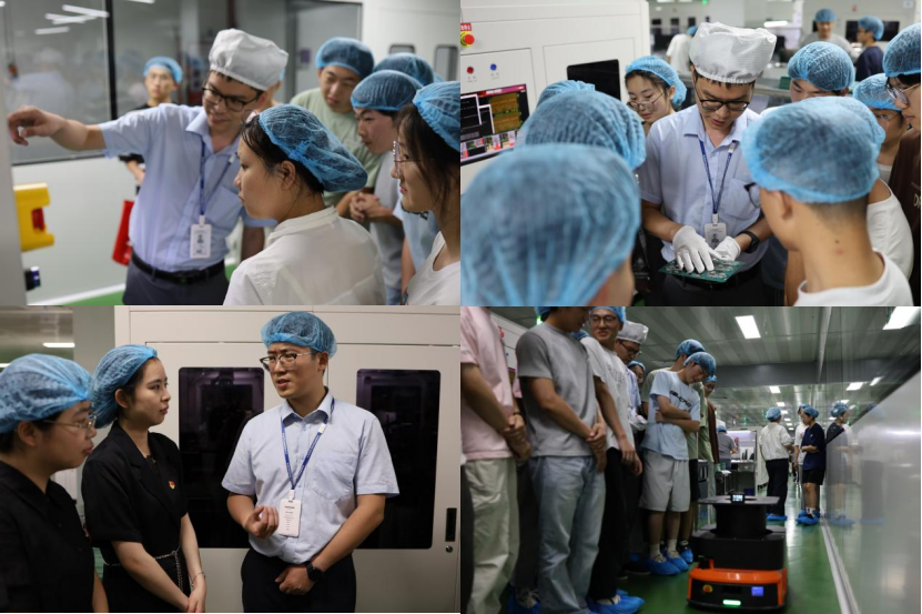 师生正在参观电路板生产车间。 李圆 摄