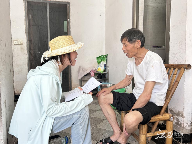 ▲实践团成员与老人进行“一对一”结对交谈