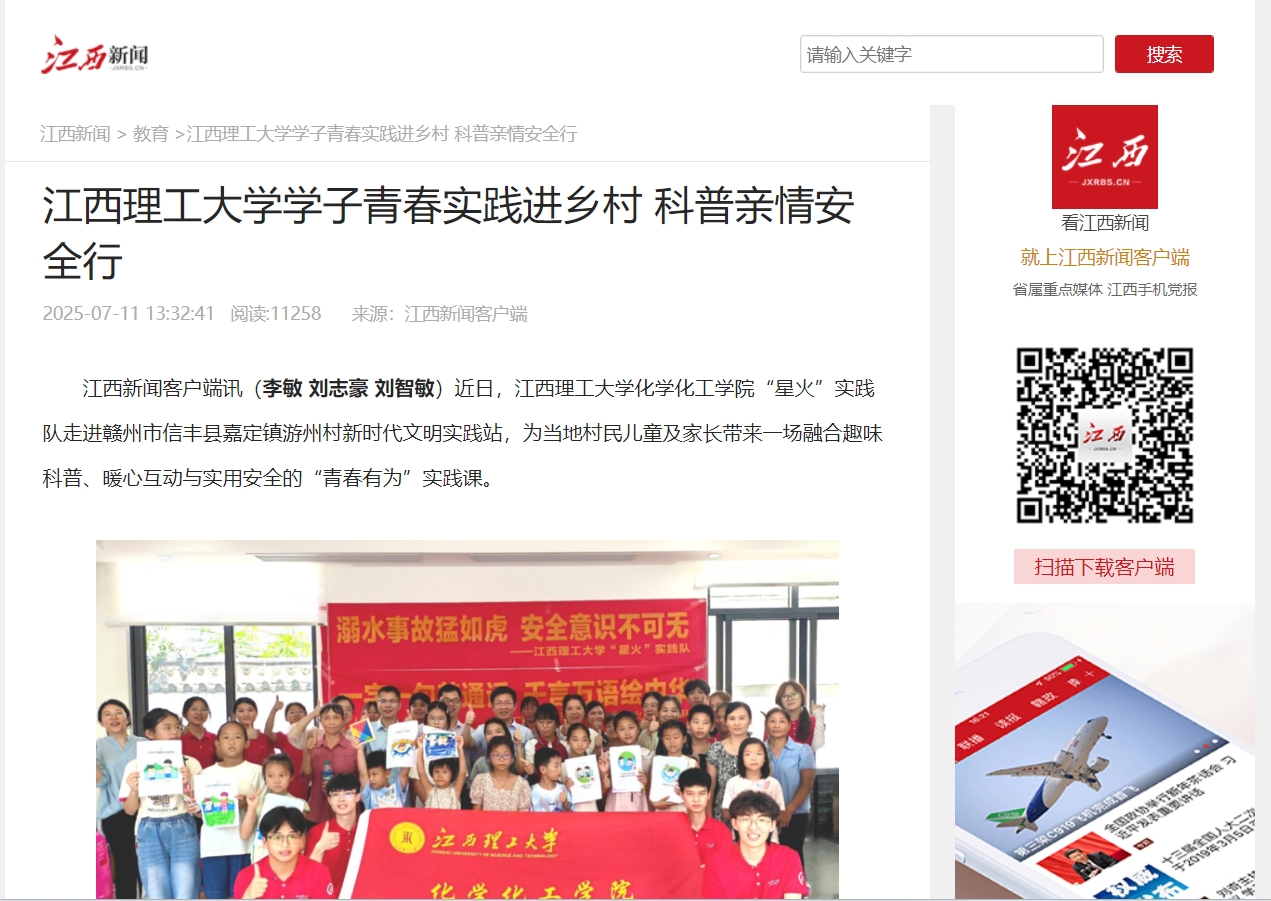 化学化工学院“星火”实践队走进赣州市信丰县嘉定镇游州村新时代文明实践站,为当地村民儿童及家长带来一场融合趣味科普、暖心互动与实用安全的“青春有为”实践课。