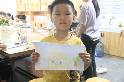 “思想大爆炸”创作环节,队员周小璐轻声引导:“想想家乡最让你骄傲的是什么?把它画下来吧。”小朋友们托腮沉思片刻,便专注创作。不一会儿,一幅幅充满温度的家乡画卷诞生了:有的画上了古朴的客家围屋,屋檐下挂着金黄的玉米;有的描绘了清澈的上犹江,江面上漂着小渔船;还有的把陡水湖景区的摩天轮画成了彩色,旁边歪歪扭扭写着“我的家乡最美”。