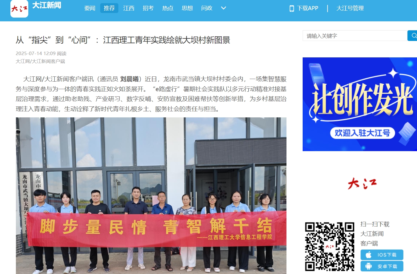 《大江新闻》:从“指尖”到“心间”:江西理工青年实践绘就大坝村新图景