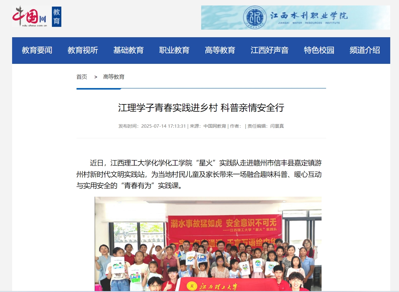 化学化工学院“星火”实践队走进赣州市信丰县嘉定镇游州村新时代文明实践站,为当地村民儿童及家长带来一场融合趣味科普、暖心互动与实用安全的“青春有为”实践课。