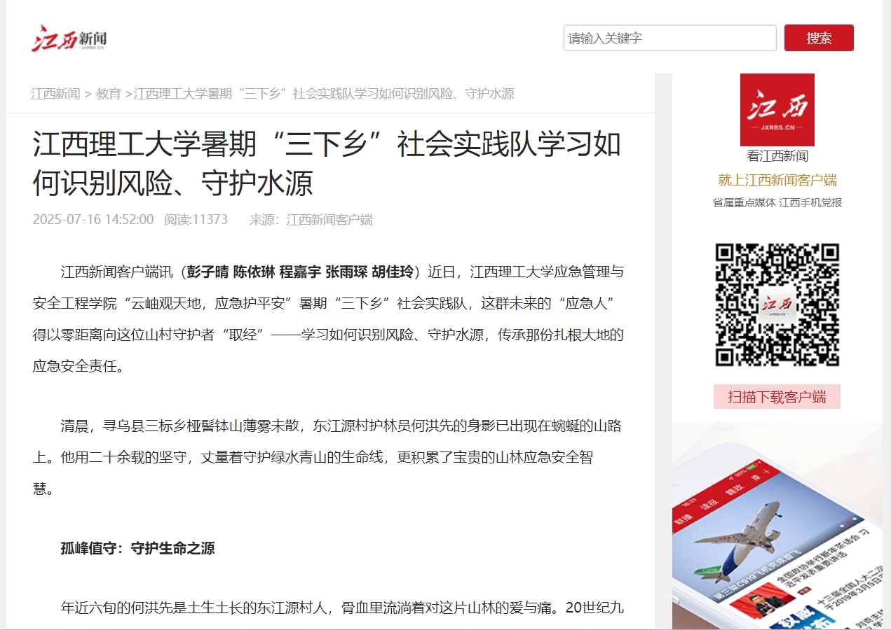 应急管理与安全工程学院“云岫观天地,应急护平安”暑期“三下乡”社会实践队,这群未来的“应急人”得以零距离向这位山村守护者“取经”——学习如何识别风险、守护水源,传承那份扎根大地的应急安全责任。