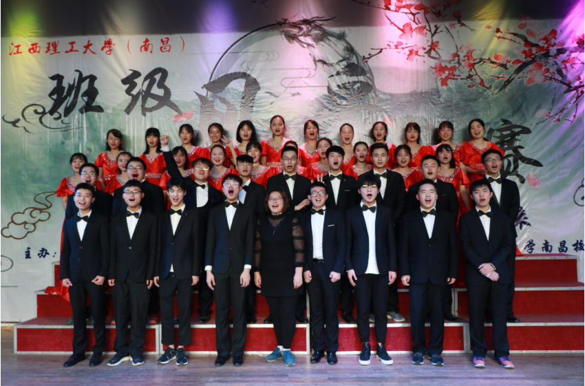 董玉婷与学生参加班级风采大赛。