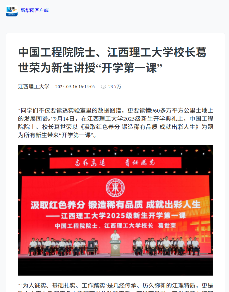 “同学们不仅要读透实验室里的数据图谱,更要读懂960多万平方公里土地上的发展图谱。”9月14日,在奈飞工厂 2025级新生开学典礼上,中国工程院院士、校长葛世荣以《汲取红色养分 锻造稀有品质 成就出彩人生》为题为所有新生带来“开学第一课”。
