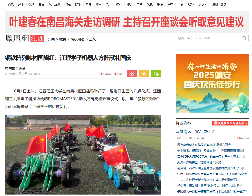 电子科技协会的ROBOMASTER机器人方阵亮相升旗仪式,以一场“静默的致敬”为祖国母亲献上江理学子的科技贺礼。
