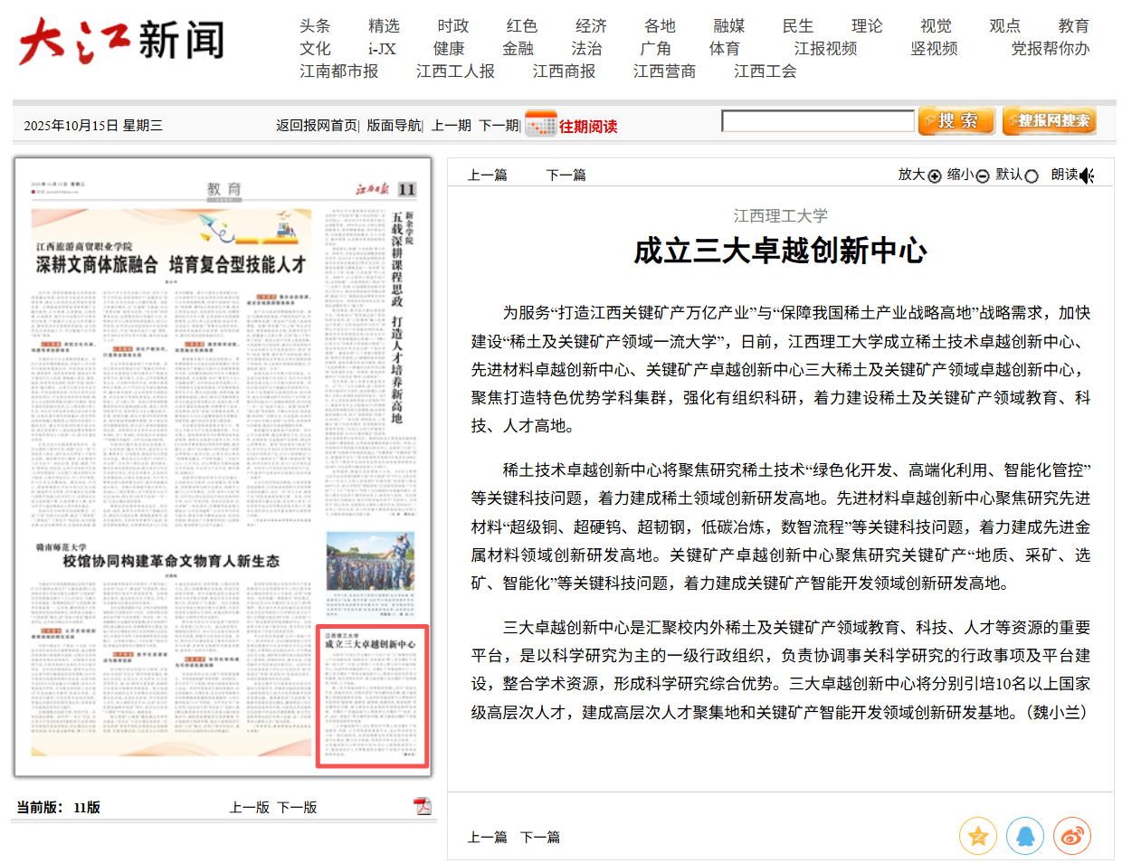 成立稀土技术卓越创新中心、先进材料卓越创新中心、关键矿产卓越创新中心三大稀土及关键矿产领域卓越创新中心,聚焦打造特色优势学科集群,强化有组织科研,着力建设稀土及关键矿产领域教育、科技、人才高地。
