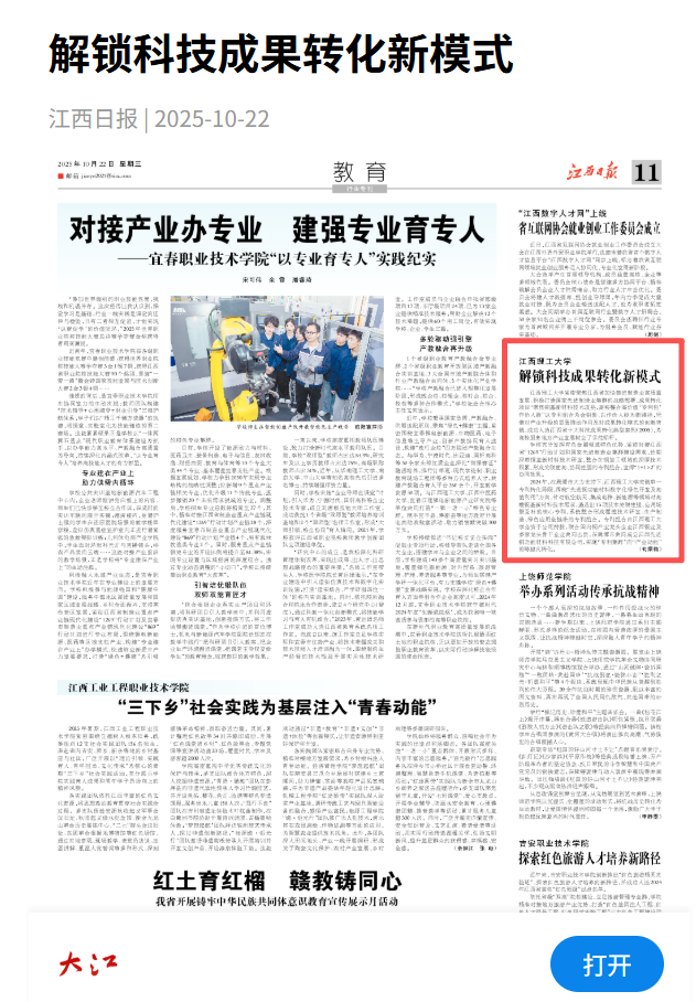 紧密聚焦江西省加快推进制造业高质量发展、积极打造国家先进制造业集群的战略部署,成果转化项目“聚焦铜基新材料技术攻坚,高校整合高价值‘专利包’作价入股”以专利组合为金钥匙、以作价入股为新路径,凭借对产业升级的显著推动作用及对成果转化模式的创新突破,成功入选江西省十大科技成果转化典型案例(2025),为高校服务地方产业发展树立了示范标杆。