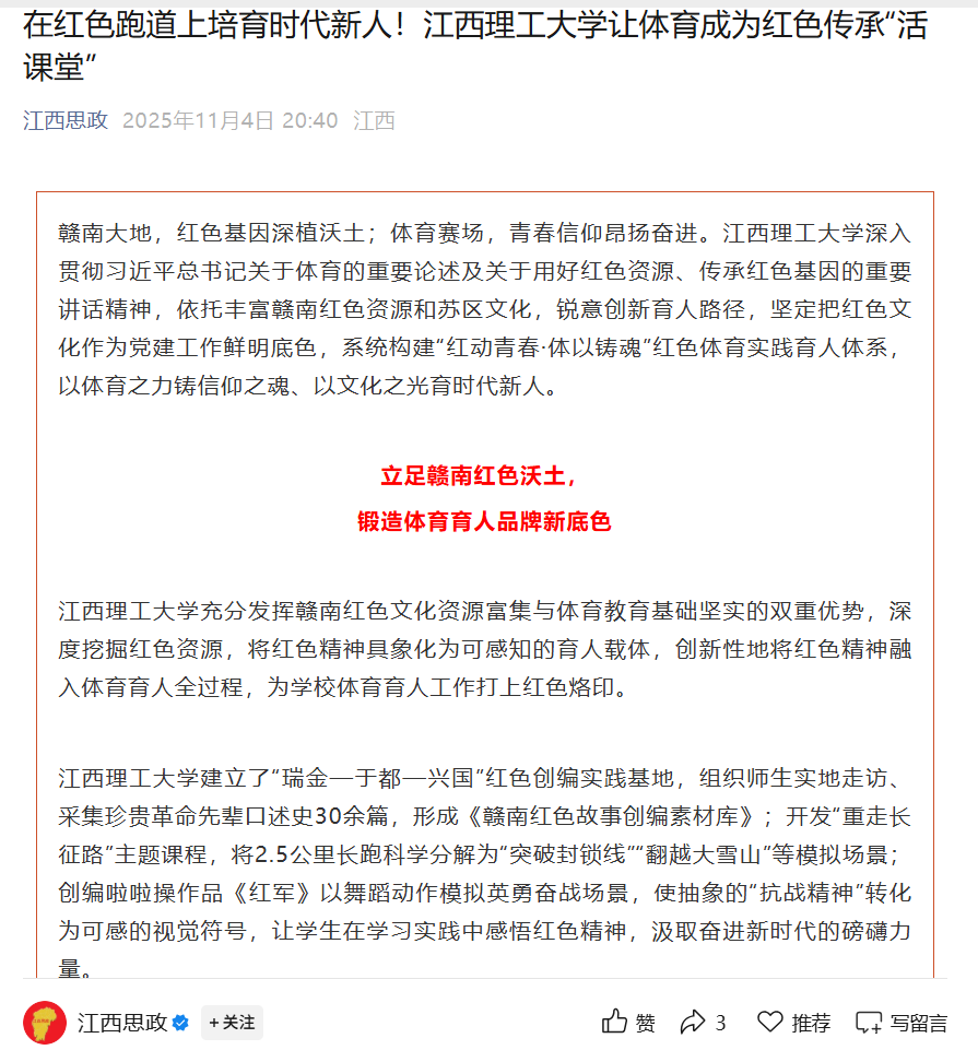 打造高校红色体育育人示范样本