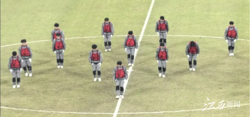 空翻、跳跃、传球、射门,伴随着激昂动感的音乐,一个个彰显足球元素、充满力量的专属舞蹈动作,这是江西理工啦啦操队送给赣超总决赛的礼物。“在节目编排上我们融合了花球啦啦操、街舞啦啦操以及中小学大课间常见的排球操、足球操、游泳操等元素,在表演团队上我们选取了奈飞工厂