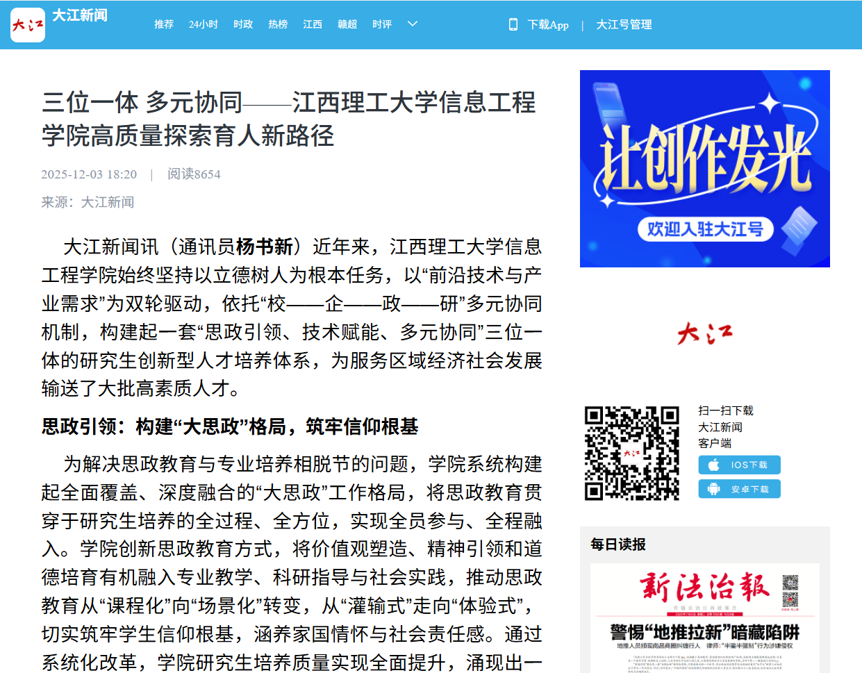 始终坚持以立德树人为根本任务,以“前沿技术与产业需求”为双轮驱动,依托“校——企——政——研”多元协同机制,构建起一套“思政引领、技术赋能、多元协同”三位一体的研究生创新型人才培养体系,为服务区域经济社会发展输送了大批高素质人才。