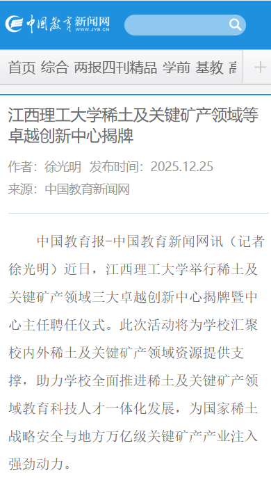 举行稀土及关键矿产领域三大卓越创新中心揭牌暨中心主任聘任仪式。此次活动将为学校汇聚校内外稀土及关键矿产领域资源提供支撑,助力学校全面推进稀土及关键矿产领域教育科技人才一体化发展,为国家稀土战略安全与地方万亿级关键矿产产业注入强劲动力。