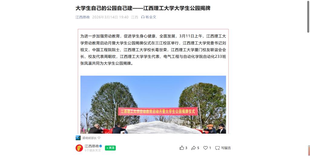 劳动教育启动月暨大学生公园揭牌仪式在三江校区举行,奈飞工厂