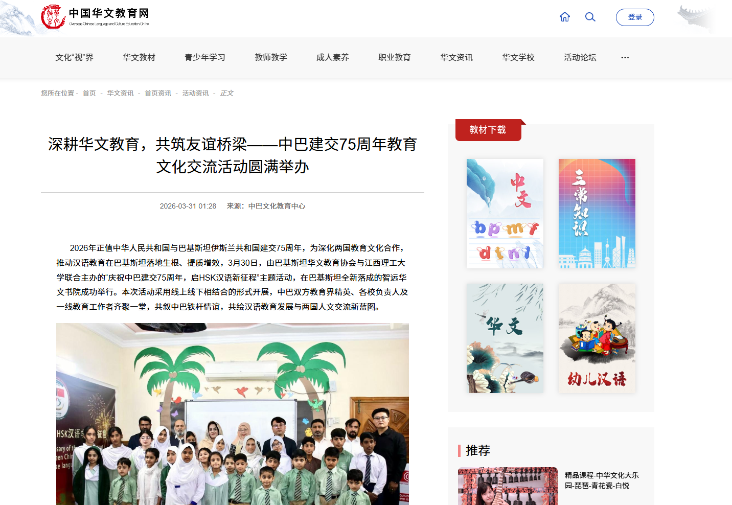 联合主办的“庆祝中巴建交75周年,启HSK汉语新征程”主题活动,在巴基斯坦全新落成的智远华文书院成功举行。