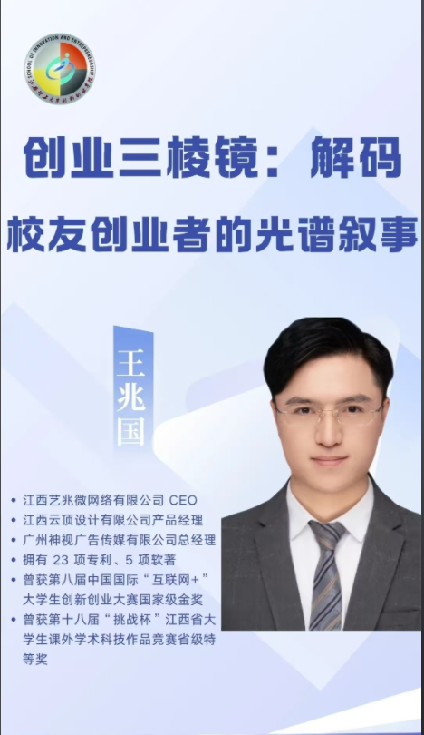 现场将邀请江西艺兆微网络有限公司CEO王兆国、赣州九艺画室校长罗永康、赣州智理信息科技有限公司CEO段俊分享他们精彩的创业故事,并现场与听众互动交流。