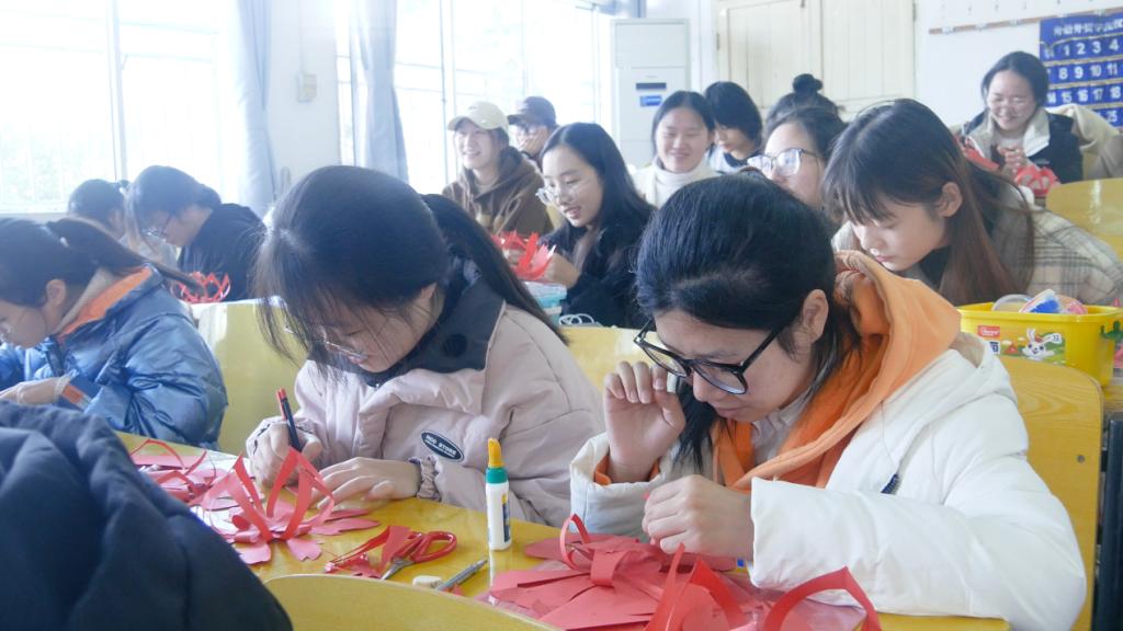外国语学院汉语国际教育2021级同学们以“‘艺’起抗震救灾,‘剪’出人间温情”为主题,将传统文化元素与抗震救灾相结合,开展中华传统才艺课,创作了一系列与抗震救灾主题相关的手工作品,在手工劳动的过程中传达对灾区人民的美好祝愿。
