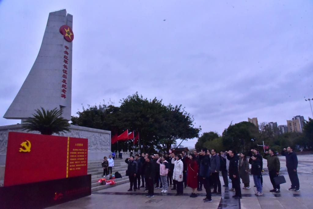 随后全体党员来到中央红军长征出发地纪念园,认真聆听讲解员讲述红军长征的艰难历程,并在长征第一渡口开展主题党日理论学习及现场教学活动,切身感悟老一辈革命战士的崇高风范,深刻领会当下幸福生活的来之不易。
