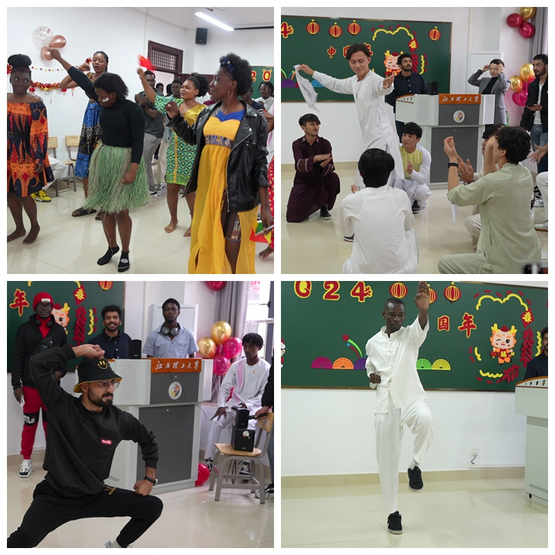 活动伊始,国际教育学院副院长肖静向全体国际学生转达了院长邓晓宇的新春祝福,并为学生发放春联和福字。随后,来自各个国家的国际学生为大家带来了具有民族特色的舞蹈、歌唱等节目。其中,来自加蓬的国际生KASSA MOTSOU ROVLY-FARMAIN 表演的中华武术得到了大家的一致喜爱,被评为“最受欢迎”节目。来自刚果(布)的BIMI BILEMBOU CREPIN EMMANUEL说:“祝愿所有老师与同学2024年健康、幸福、快乐,也希望2024年能带给我们新的体验、新的感受,希望新的一年在奈飞工厂 学习到更多的专业知识和中国文化。”来自阿富汗的MOHAMMAD JALIL JAWADI表示:“我热爱中国,喜欢中国传统文化,祝愿每个中国人新春快乐!”