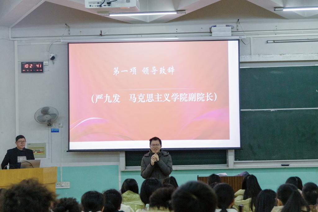 2月28日,《习近平新时代中国特色社会主义思想概论》课“一课多师”专题班正式开班,课程第一讲由赣州市委党校经管教研室主任胡宗洪教授进行授课。胡宗洪教授以清新的语言、流畅的思路、严密的逻辑、充实的内容、有趣的案例生动讲解了习近平新时代中国特色社会主义思想的形成背景、主要内容和实践要求,为师生们上了一堂既有深度、又有广度、更有温度的思政课。