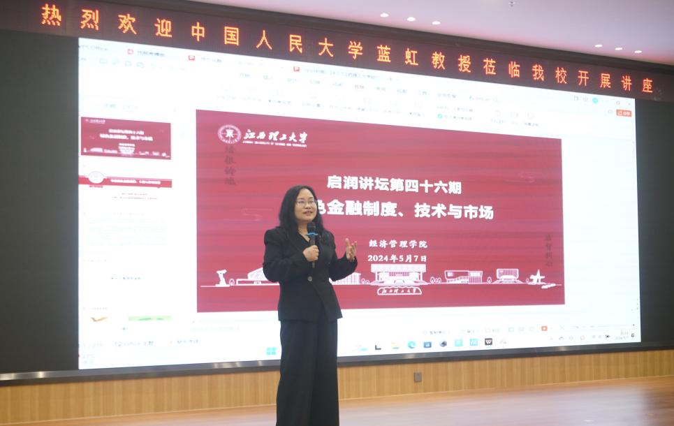讲座伊始,蓝虹详细介绍了绿色金融的核心概念和重要性。她指出,绿色金融是金融领域与生态环保领域深度融合的产物,旨在通过金融手段引导资金流向绿色产业,支持环境保护和可持续发展。随后,她深入剖析了绿色金融的制度框架,详细阐述了绿色信贷、绿色债券、绿色基金、绿色保险、碳交易等多种金融工具在推动绿色产业发展、促进环境保护方面的重要作用。最后,她通过对比国内外绿色金融制度的演变,介绍了我国绿色金融制度建设进展及成果。她强调,绿色金融不仅是金融业发展的必然趋势,也是实现经济社会可持续发展的重要途径。