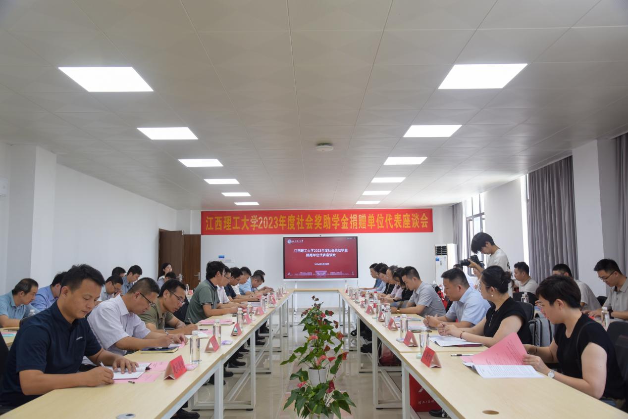 2023年度社会奖助学金捐赠单位代表座谈会及集中颁发仪式在三江校区大学生活动中心举行。惠明慈善基金有限公司、金诚信矿业管理股份有限公司、江西金力永磁科技股份有限公司、共青城瑞钛管道科技有限公司、深圳市豪鹏科技有限公司、华院数据技术(上海)有限公司、赣州金环磁选科技装备股份有限公司、赣州腾远钴业新材料股份有限公司、广盈控股集团有限公司、江西汉驱智能科技有限公司代表,校党委常委、副校长熊志华出席,各学院、相关职能部门负责人及获得社会奖助学金的师生代表200余人参加此次活动。大会由校党委学生工作部副部长孟冲主持。