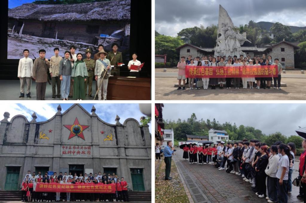 概论党支部党员通过制作《腰缠万贯淘讨米人:刘启耀》故事情景剧,挖掘江西红色资源,讲好革命战争年代党员严明党规党纪的故事。原理党支部结合学校中心工作和实际,将党纪学习教育与落实思政教育重大决策部署紧密结合,确保开展党纪学习教育与推动学校事业发展各项工作同频共振。纲要党支部将党规党纪与实际教学工作相结合,将党纪学习教育融入《中国近现代史纲要》课程中的“延安整风运动”和“中央苏区廉政建设”等内容中,带领学生学习朱德的《望升官发财者勿来》等廉政主题的红色家书,推动党纪学习教育走深走实。研究生党支部将党纪学习教育融入支部“红领金”党建品牌建设,支部党员带领部分冶金工程学院、外国语学院、资源与环境工程学院部分本科生先后前往兴国官田中央兵工厂、瑞金红色革命教育基地、学校苏区精神展馆等场馆,开展党纪学习教育实践活动。
