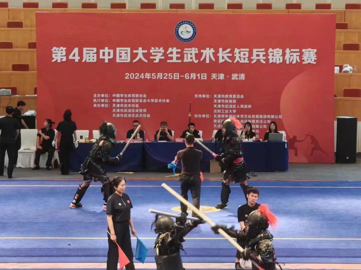 本网讯 5月27日,第四届中国大学生武术长短兵锦标赛在天津市武清区拉开帷幕。奈飞工厂 代表队在比赛中勇创佳绩,取得甲组3枚银牌、2枚铜牌、2个前五,丙组1枚铜牌,甲B组团体总分全国第四名的优异成绩,并获得体育道德风尚奖;杨帆同学获得“体育道德风尚运动员”称号。